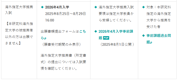 当研究科2026年4月入学「海外指定大学推薦入試」への推薦依頼を